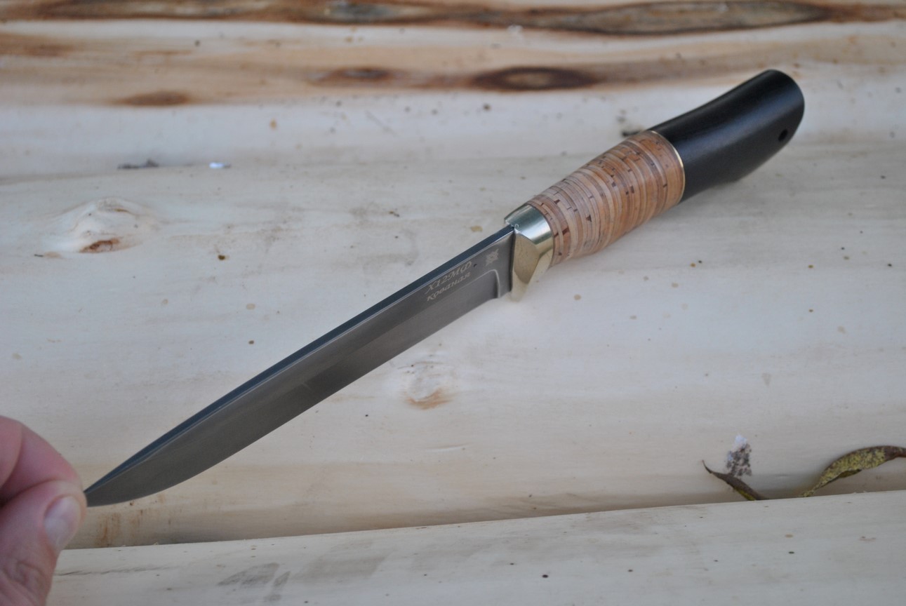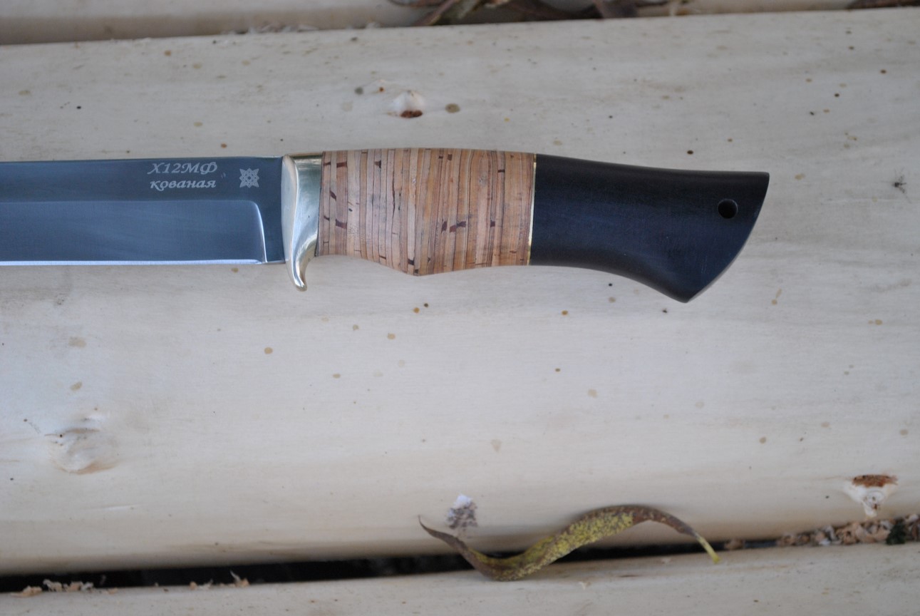 Клинок этой модели изготовлен из кованой стали Х12МФ, благодаря чему нож удивительно долго сохраняет острую режущую кромку. Даже при работе по тяжелым материалам режущая кромка не выкрашивается и не создает заминов.