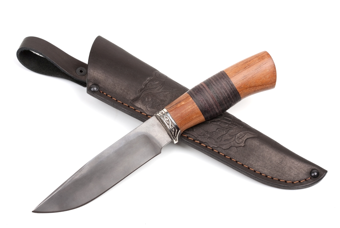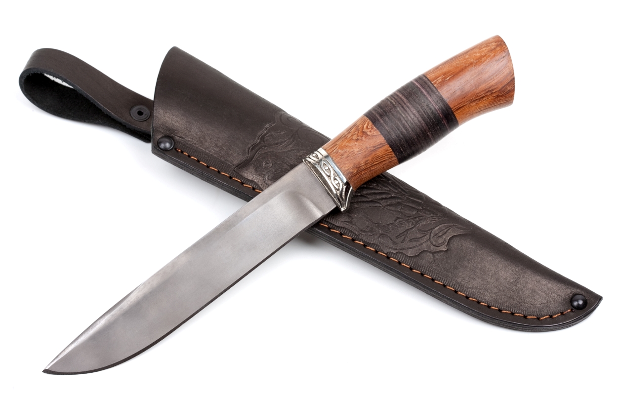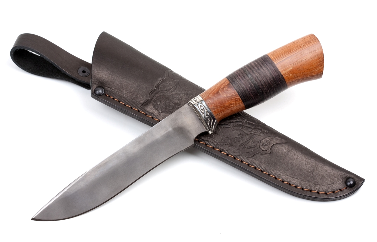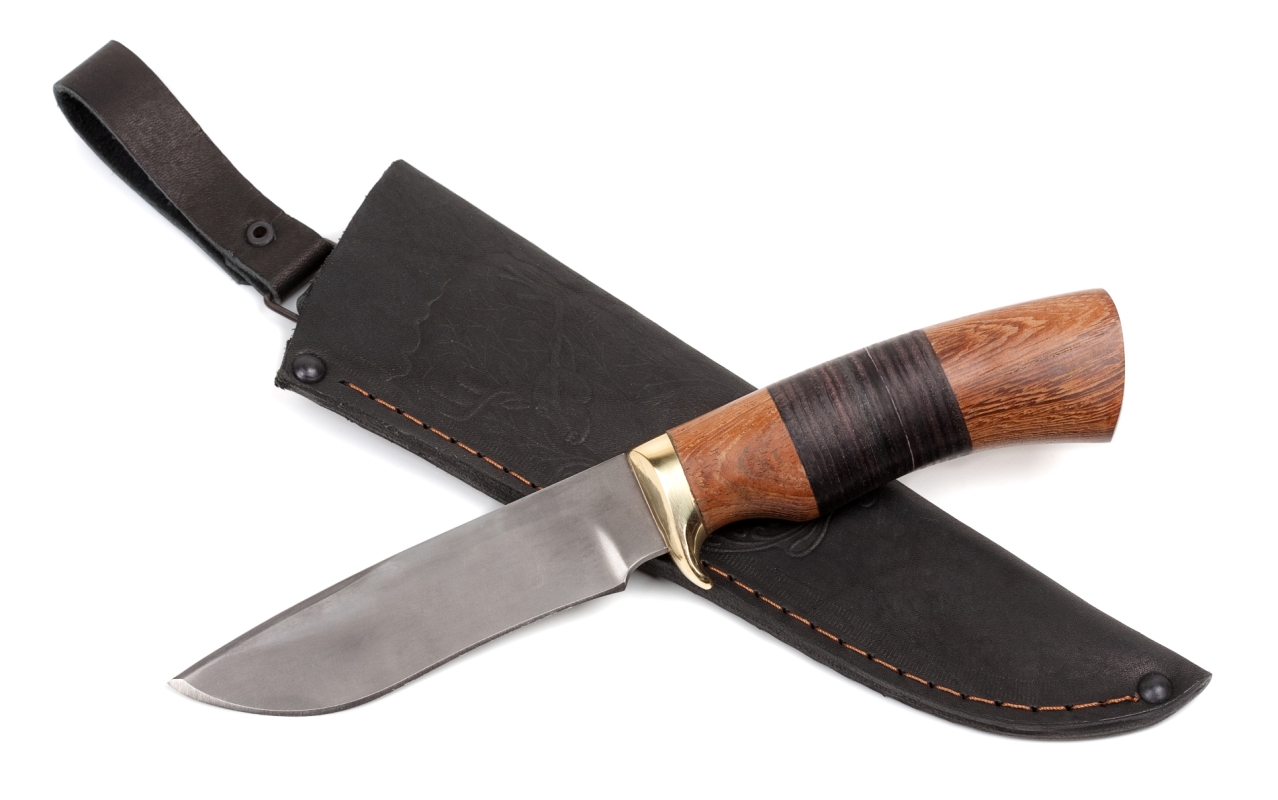 Нож Х12МФ «Рысь». Рукоять ножа выполнена из наборной кожи и дерева «Венге».