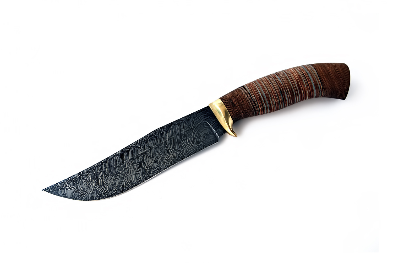 Нож из дамасской стали «Бухарский» (рукоять кожа, венге).