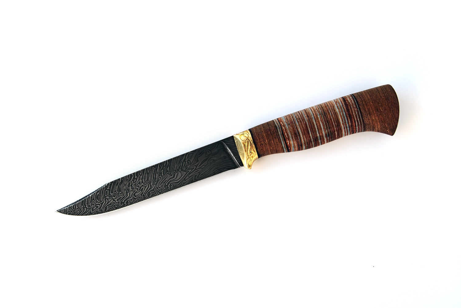 Вы можете купить ножи из дамасской стали с рукояткой, выполненной из светлой наборной кожи. Мы представляем вашему вниманию: нож из дамасской стали «Бухарский», «Щука», «Гепард», «Рысь», «Витязь».