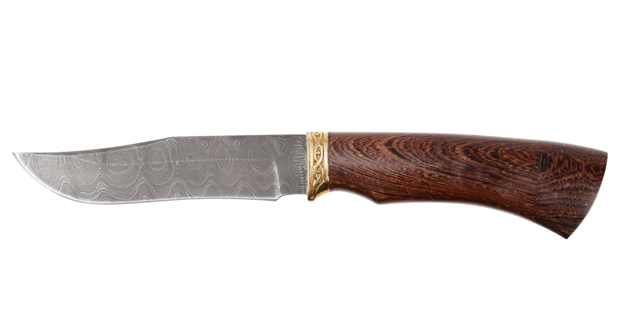 Нож из дамасской стали «Коршун» - это универсальный охотничий нож, который можно использовать во время различных охот в разных углах нашей Родины. Владелец ножа «Коршун» без проблем откроет консервную банку во время привала, и легко сможет освежевать добытого зверя на охоте. Рукоять ножа «Коршун» выполнена из дерева «Венге», литье латунь.