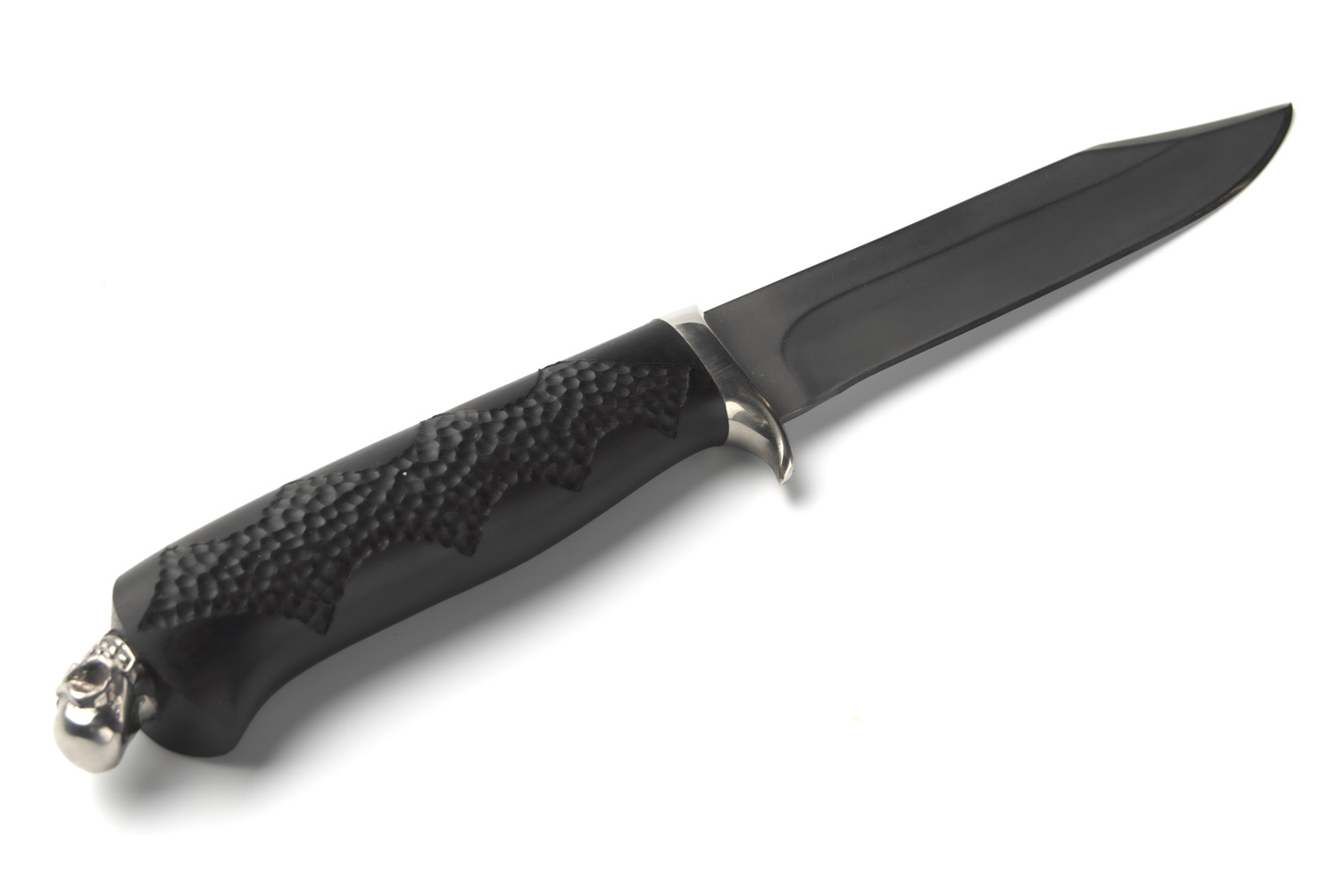 Все новинки имеют одинаковый стиль исполнения. Основная идея выбранного стиля, заключается в том, что бы охотничий нож имел холодный дизайн и выглядел настоящим мужским охотничьим оружием. Сочетание темной кожи на рукояти и дюрали, а так же черного граба и мельхиора действительно придают изделию брутальный вид. Не смысла говорить о том, что сейчас на рынке огромное предложение разнообразных охотничьих ножей, с клинками всевозможных форм, с рукоятями из различных материалов, но, тем не менее, представленные охотничьи ножи, обладая определенным художественным образом, не утратили своей практичности и рабочих качеств. Охотничьи ножи с рукояткой из граба имеют литье в виде черепа, что придает дополнительный агрессивный и мужской вид.