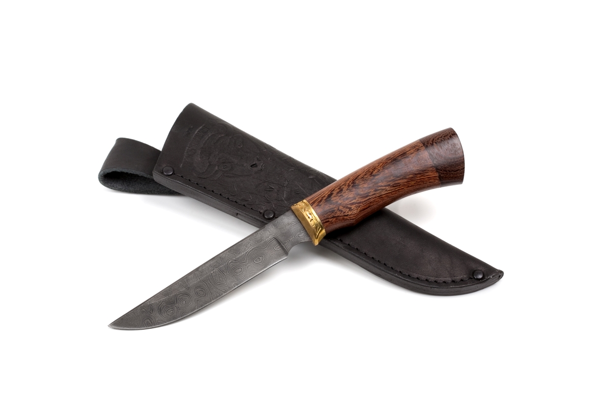 Как часто бывает, на охоте необходим простой рабочий, надежный нож. У нас вы можете выбрать недорогие ножи из дамасской стали. Ножи имеют одинаковое исполнение и форму рукоятей, которые выполнены из дерева Венге, в качестве упоров использовано литье из латуни. Вообще, дерево венге – прекрасный материал для изготовления рукоятей ножей, обладает темной и плотной сердцевиной, прекрасным цветом и фактурой. Ниже представлены недорогие ножи из дамасской стали, которые постоянно есть в наличии. Данные ножи пользуются спросом наших покупателей, и являются классическими охотничьими ножами.