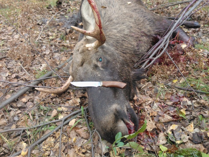 Одни из наших постоянных клиентов, которые занимаются охотой, и охотой именно по зверю, взяли на «испытание» охотничий нож «Гепард». Остановились на довольно-таки простом варианте – сталь 95Х18, рукоять Венге. После удачной охоты, освежевали данным ножом добытого лося. И, к нашему удовольствию, мы получили хорошие отзывы о ноже и, самое главное о клинке ножа.