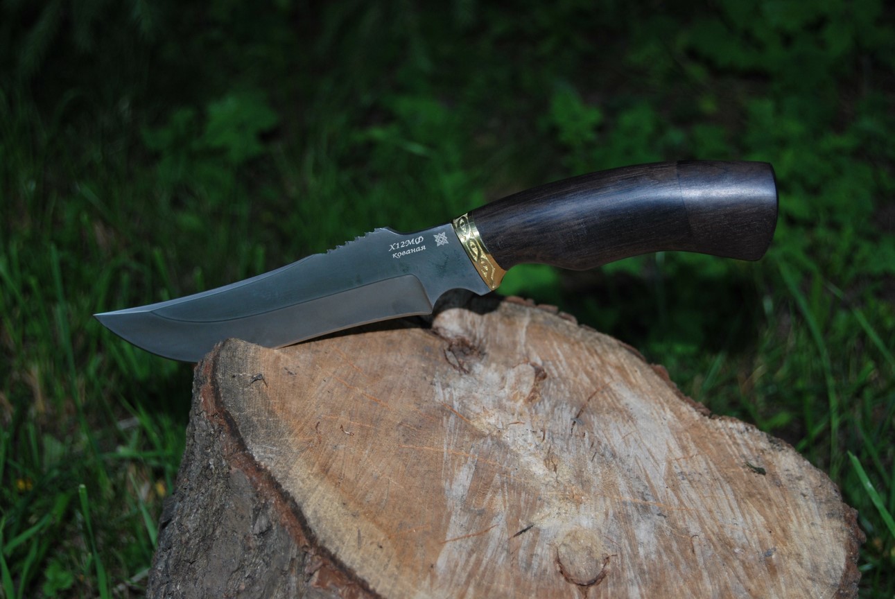 В данном обзоре мы хотим рассказать об универсальном охотничьем ноже «Витязь», который выполнен методом ручной ковки из прочной стали Х12МФ.